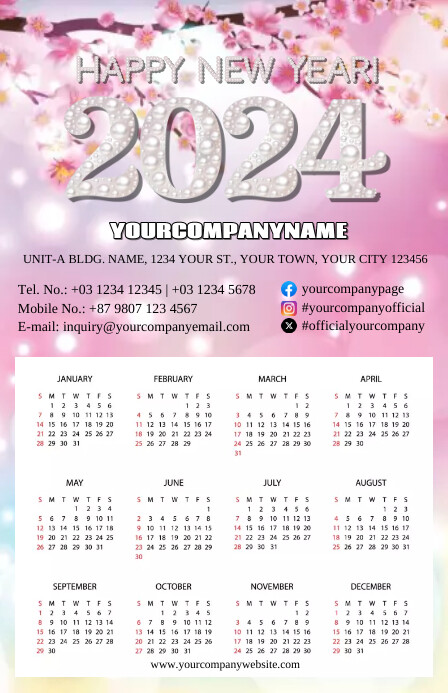 2025 New Year Calendar Cherry Blossom Templat Template | PosterMyWall